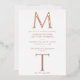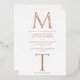 Introducing the Rose Gold Modern Monogram Wedding Invitation—a masterpiece of contemporary design that beautifully blends elegance with a personalized touch. This invitation is a tribute to the power of simplicity, featuring a striking large serif monogram that takes centre stage, setting the tone for an event that exudes both sophistication and individuality.