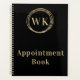 This is a modern and elegant, two initials, monogram, business appointment book design. This stylish design, is in elegant black with gold coloured typography / text and gold effect circle. At the bottom in matching gold typography are the words "Appointment Book". Add your initials by typing them into the personalize this text box. You can also change the words, "Appointment Book" to your own text, if you want to. To customize further, check out the design editing tool, where you have the option of changing the colour or font, or switching off the gold circles. For help with personalization,  matching products, or for a custom design, contact me via zazzle chat or email: ursuladawnmoon@gmail.com