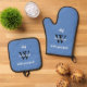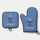 Modern Monogram Chic Script Chef Name Rustic Blue Oven Mitt & Pot Holder Set