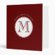 Modern Monogram Circle Dark Red Burgundy White Binder