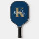 Modern personalized custom color pickleball paddle featuring a monogram and name shown in an editable hand-lettered signature script name and customizable blue, gold and white colors for the pickler or pickleball enthusiast. COLOR CHANGES: Change the text or background colors or add a styled graphics background by clicking on the EDIT tab in the PERSONALIZE section to create your own custom design. PADDLE OPTIONS: Choose from Black, Tan or White edging and grip colors on the ordering page. ASSISTANCE: For help with design modification or personalization, color change, transferring the design to another product or if you would like coordinating items, contact the designer BEFORE ORDERING via the Zazzle Chat MESSAGE tab below or email makeitaboutyoustore@gmail.com.
