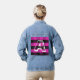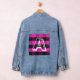 A custom denim jacket with a decorative square panel on the back. The design on the panel is magenta pink buffalo plaid check, with your chosen initial as a white capital letter forming a monogram. This cool and trendy jacket has retro elements yet is modern and stylish. Click 'Personalize' to enter the initial you would like on the design, and preview the result.