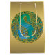 Modern Monogram Initial Gold Letter and Turquoise Medium Gift Bag