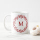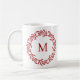 Modern Monogram Initial Red Leaf and Berry Wreath Coffee Mug