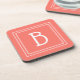 Modern & Stylish personalized monogram added to decorative chic updated style pattern coaster in soft coral and white. Great gift idea! Easily customize with design tool to make it your own! Contact me at beachpausedesigns@gmail.com if you need help or have questions with this or any of our designs. Other design options and colours available.