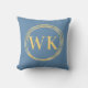Modern Monogram Initials Dusty Blue Gold Circles Throw Pillow