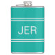Modern Monogram Initials Minimal Simple Teal Green Hip Flask