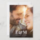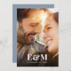 Modern dusty blue wedding save the date announcement featuring your photo overlayed with your monogram initials showcased in large elegant white typography. Personalize your save the date details on the back in simple white lettering.