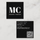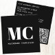 Modern typography minimalist monogram initial design. Black background, or change it in the Design Tool to match your brand. Change all the text and the QR code destination website address to customize.  Elegant, minimalist and professional to give your business the edge.