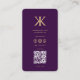 Modern Monogram K Dark Purple Gold Professional Marketing Business Card with QR code, can easily be personalized along with the feature line to make a design as unique as you are! Need help? Feel free to contact me using the message button on the product page. I am happy to help with your personalization, additional items or custom orders.