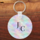 Modern Monogram Logo Iridescent Opal Stylish Keychain