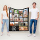 Modern Monogram Name 14 Photo Collage Custom Colou Fleece Blanket