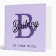 Modern Monogram Name Purple Black Script Office Binder