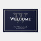 Modern Monogram & Name Script Cute Chic Wedding Welcome Doormat. Personalized with monogram initial and bride and grooms last name and date established on a navy blue background. Click personalize this template to customize it quickly and easily. Perfect gift for newlyweds. Lovely for their new home together. Ships Worldwide fast.