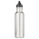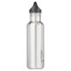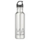 Subtle personalized stainless steel silver metal water bottle with 2 monogram initials and name printed in thin sans serif simple font that's minimal, masculine, and understated.