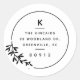 Classic black and white return address sticker label personalized with your family monogram and address featuring a modern wire wreath with hand drawn laurel branch accent and modern type on a classic circle sticker.