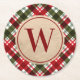 Modern Monogram on Christmas Plaid Round Paper Coaster