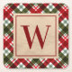 Modern Monogram on Christmas Plaid Square Paper Coaster