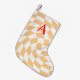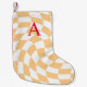 Retro psychedelic modern checked pastel peach and white checks Christmas stocking, with personalized monogram