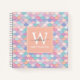 Modern Monogram Pretty Mermaid Orange Sketchbook Notebook. Personalized notebook. Mermaid pattern designed by brgfx.