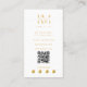 A beautiful white and gold monogram initials design and your QR Code. This elegant marketing business card is ideal for all types of professions. A simple and professional way to introduce your business. Customize the social media icons in this design to suit your business needs. Personalize your details to create your own unique monogrammed business card.