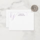Stylish personalized note cards with fancy calligraphy script initials or monogram and name in your choice of colours (shown in purple). CHANGES: The text font style, colour, size and placement can be changed in EDIT. ASSISTANCE: For help with design modification or personalization, colour change, resizing, transferring the design to another product or if you would like coordinating items, contact the designer BEFORE ORDERING via the Zazzle Chat MESSAGE tab below or email makeitaboutyoustore@gmail.com.