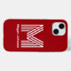 This modern monogram red iphone 15 case is trendy yet and classic. It features your first or last initial in a bold trendy font and your name in a coordinating classic font in white. It's simple and minimal, chic and stylish.