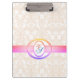 Modern Monogram Retro Antique Pattern Vintage Pink Clipboard
