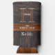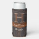 Modern rustic wood tone monogram,seltzer Slim can cooler, For bbq outdoor parties festivals ,pool party branding fundraisers events ,picnic camping fishing beach boat , classic woodgrain wood grain , wedding birthday graduation