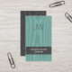 Make a memorable first impression with an elegant rustic wood grain print vertical business card. The simple minimalist turquoise teal and grey design with modern typography monogram presents your contact info with classic professional style. Suitable for freelance entrepreneurs, small businesses, or corporate office professionals, this plain & minimal card is trendy yet timeless. All text is simple to personalize for any profession.