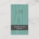 Modern Monogram Teal Faux Wood Minimalist Vertical Business Card