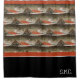 Modern Black and Rust Fisherman's gift, monogrammed with name. Fly Fishing Trout Watercolor pattern Shower Curtain. This design is a great gift for men, women, and kids (and you, too, of course!). If you like fishing, lake house, or cabin decor, this patterned Bathroom set and matching items are for you.