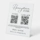 Modern Monogram wedding honeymoon fund QR code Pedestal Sign