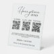 Modern Monogram wedding honeymoon fund QR code Pedestal Sign