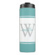 Girly modern minimalist script personalized trendy monogram thermal tumbler. The elegant teal stylish script matches the line design in colour but offsets it in style, creating a fun twist to the minimalist look.