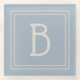 Modern Monogrammed Soft Blue & Ivory Initial Glass Coaster
