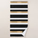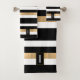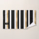 Modern black, white and gold tone bath towel set with a bold horizontal striped pattern. A black and gold tone decorative plaque, has a custom white one letter monogram. Personalize the letter to suit your needs. Matching bath decor is available.