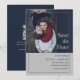 Capture the mood of your wedding celebration with this sophisticated Save the Date. Featuring a cinematic photo layout and a minimalist Navy Blue & soft silver aesthetic, this design includes a customizable QR code on the back to seamlessly direct guests to your wedding website. Perfectly suited for modern, urban, or romantic weddings.