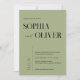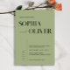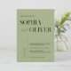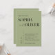Modern moss green minimalistic typography wedding Invitation. Customize this design with your personal info and your initial on the back side.