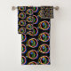Modern Multicolor Abstract Circles on Black Bath Towel Set