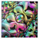 This tile is decorated with a trendy iridescent pattern. It has different colour reflections depending on the angle of view and the light. The abstract pattern uses different shades of colour to create an iridescent effect. This type of tile is often used to add texture and colour to a room, and can be used to create an interesting focal point in a kitchen, bathroom or other living space.