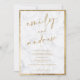 A modern, chic and elegant wedding invitation with custom names with a hand written calligraphy on white marble with a faux gold foil geometric border frame. Click the customize button to choose from different names, if you can't find your name, just contact me via the chat button before purchasing for customization. All the text, names and background colours are customizable. A simple and minimalist invitation.