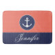 Modern Nautical Coral Blue Anchor Personalized Bath Mat