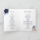 This modern nautical floral folded wedding program is perfect for a cruise or beach wedding. The whimsical design features blush pink and navy blue watercolor flowers with gold starfish accents, giving it a beachy vibe.