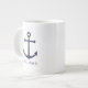 Modern Nautical Navy Blue Anchor with Custom Name Large Coffee Mug