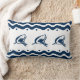 Modern Nautical Navy Blue and white Shark Lumbar Pillow