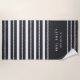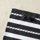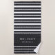 Upgrade your boat gear with this modern personalized beach towel featuring your yacht or boat name in clean white lettering with alternating solid white and nautical rope stripes.