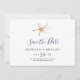 This modern nautical starfish horizontal save the date card is perfect for a cruise or beach wedding. The simple design features gold starfish.