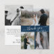 Modern, Elegant, Navy Minimalist Hand Lettered Wedding 3 Photo Collage Thank You Card. Stylish wedding thank you card template featuring three (3) photo on the front and one (1) photo on the back side. With the text "thank you" in a swirly hand lettered typography script font in white on navy blue colour background. Personalize the custom name and thank you message. If you prefer to handwrite your note, just delete the sample text to make more space. If You need help or matching item, please contact to designer!