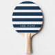 Modern Navy and White Striped Pattern Custom Name Ping Pong Paddle